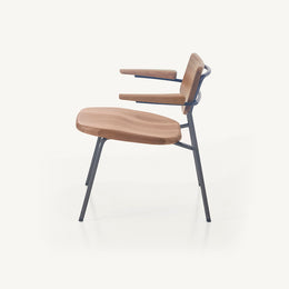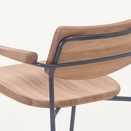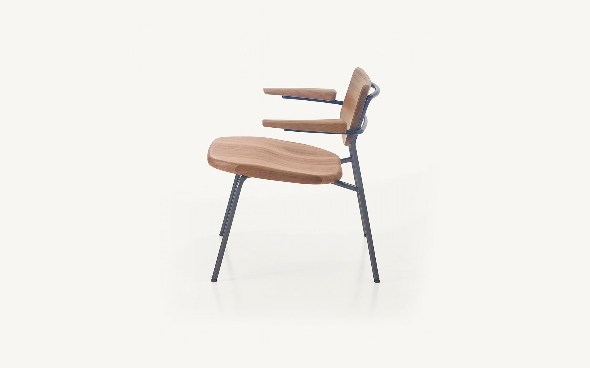 Our original brief for the Pipe was to create something stackable up to groups of four, for indoor and outdoor use. The A-frame gives these chairs a stance that is classic and strong. Indoor versions are created from tubular stainless steel (available in multiple finishes) and solid wood seats and backs carved in two directions, with softened edges. All-weather alternatives are shaped the same way, but in wholly teak or iroko.