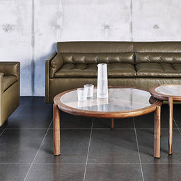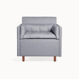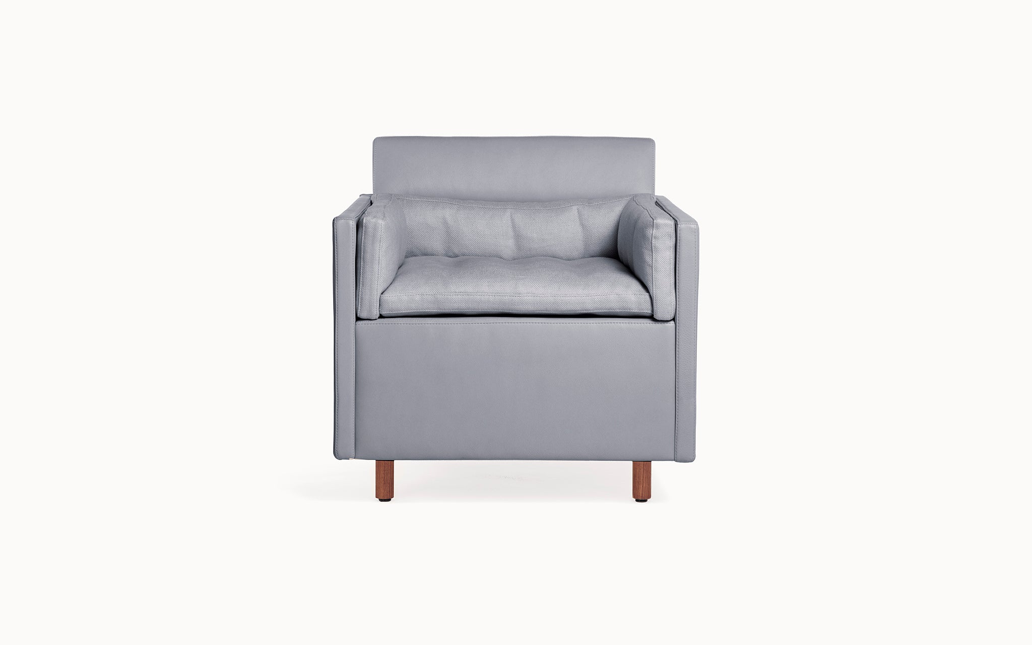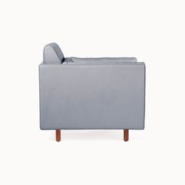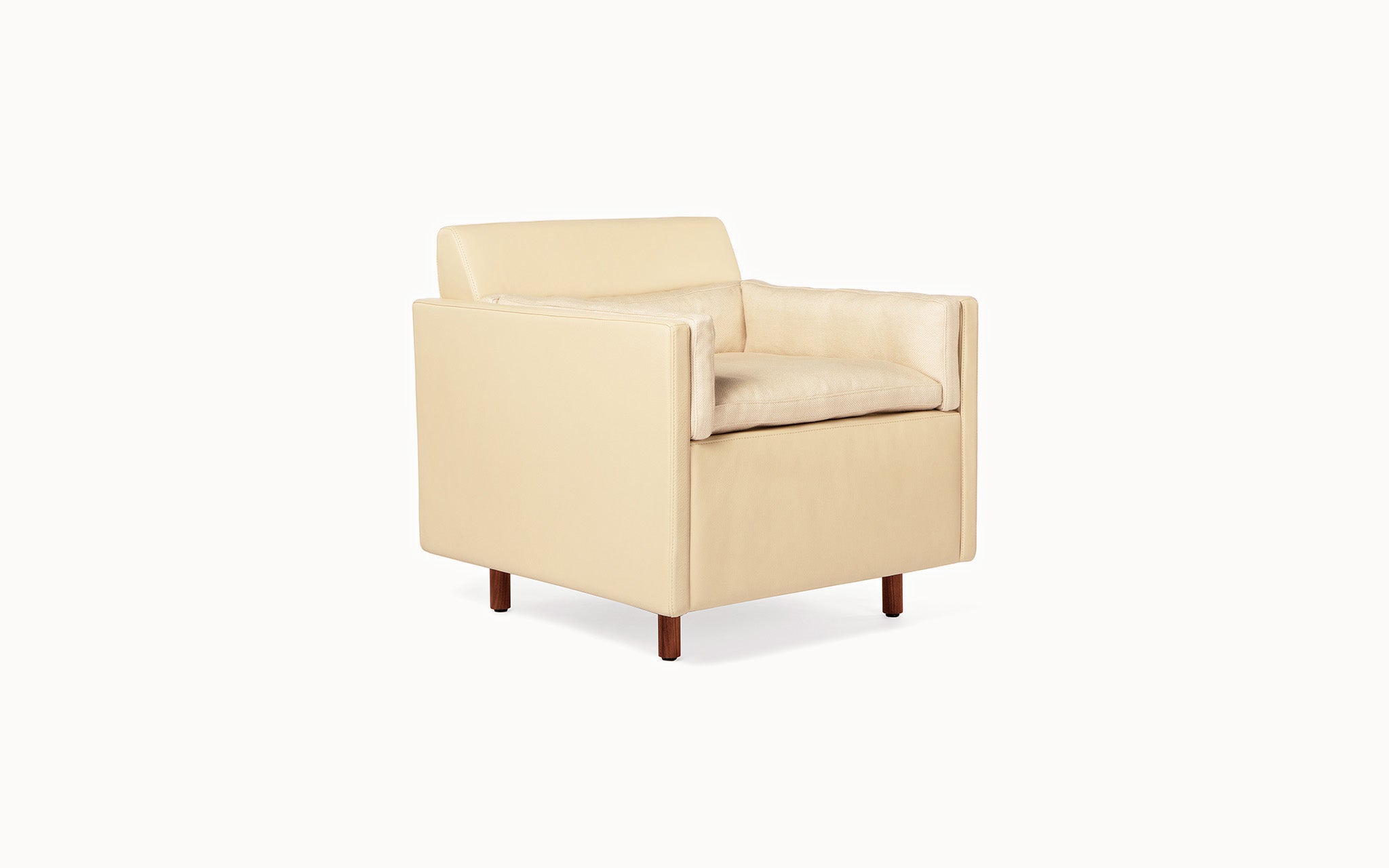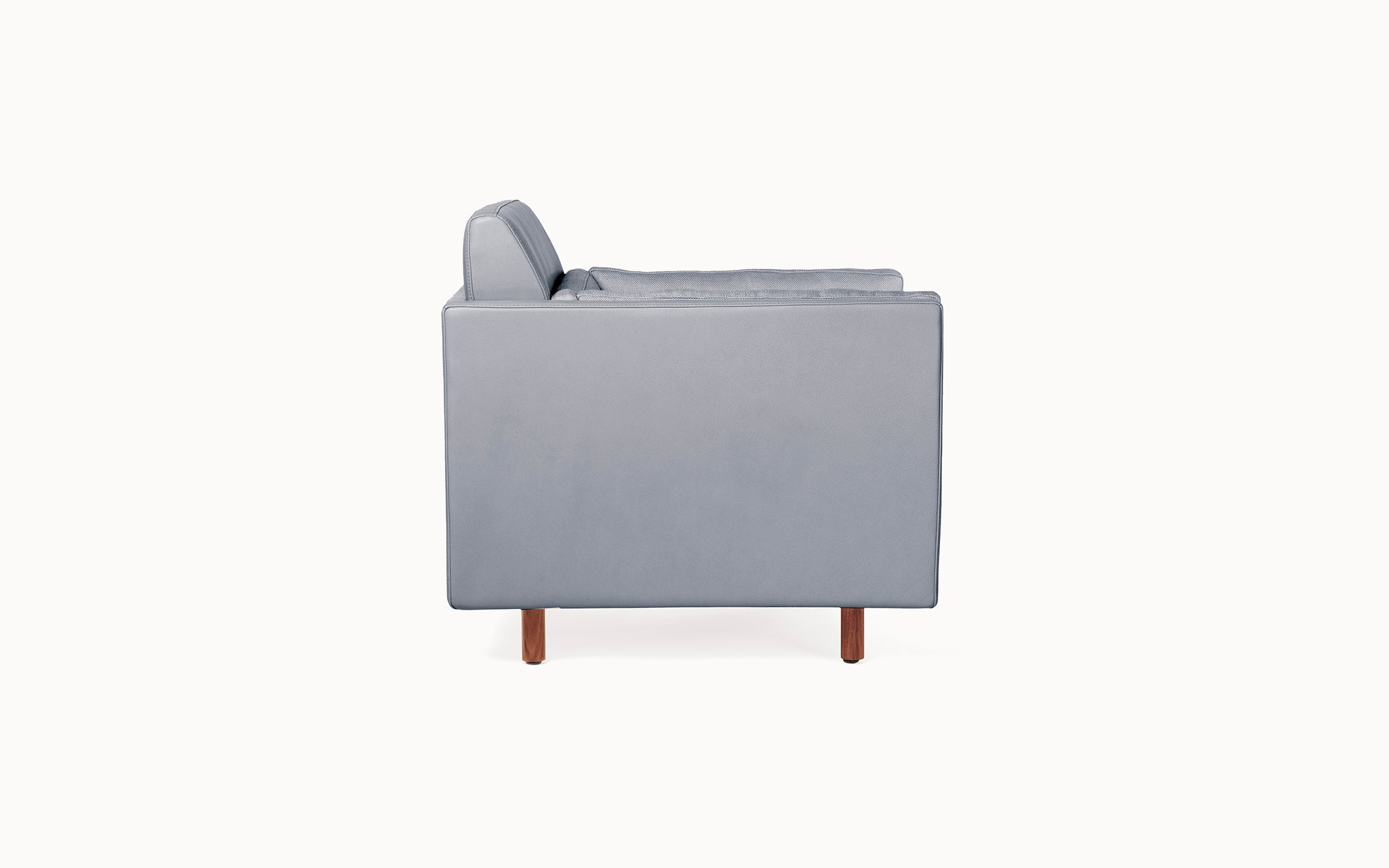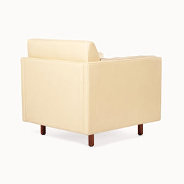 The Club Chair, Settee, Sofa and Ottoman that make up the Salon Collection were conceived to create spaces for conversation and conviviality. They are designs for the ultimate lounge, as comfortable as it could ever be, with a consistent visual tone, and taking up minimal floor space. They are versatile – pieces can be grouped, arranged in the round, or rearranged according to the flow of guests and visitors. Some of our inspiration comes from the all-encompassing tufted-upholstery cocoon of the traditional gentlemen’s club, but we wanted something modern, and far lighter within a space. We employed BassamFellows’ signature layering system, which features a thin seat topper and lumbar and bolster cushions filled with feather and down, baffled inside to retain their structure and comfort. They are zippered in place and secured neatly within the frame. The overall effect is sharp, comfortable, and timeless.