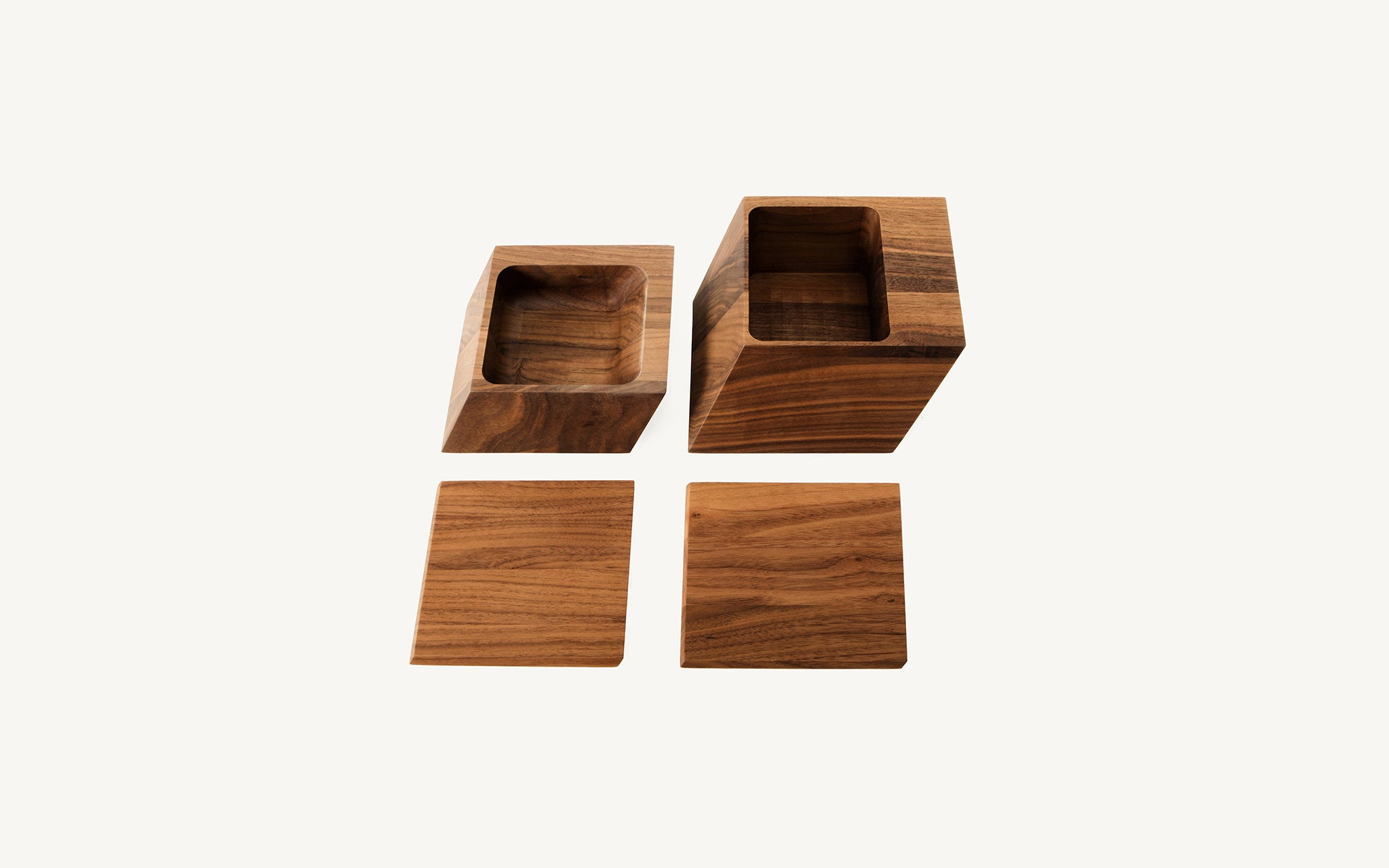 We believe that every component of contemporary living should be beautiful. Storage is essential, but why can’t it be a functional piece of art? This is what inspired the BassamFellows Desk Accessories. The Sharp Series is defined by strongly shaped forms. Taking inspiration from an axonometric view of a simple box, we carved the pieces from a solid wood block, offering a design juxtaposition between their precise architectural shapes and the warm character of the wood. Consider them all as modular, functional sculptures for anywhere in the home or workplace.