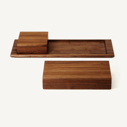 We believe that every component of contemporary living should be beautiful. Storage is essential, but why can’t it be a functional piece of art? This is what inspired the BassamFellows Desk Accessories. The Soft Series features gently turned edges, celebrating the tactile and warm nature of each piece, again carved from a solid wood block. Each storage container can be used individually or as part of the modular system. They represent simple Modernist luxury.