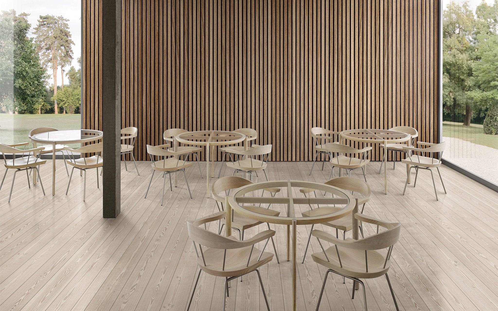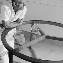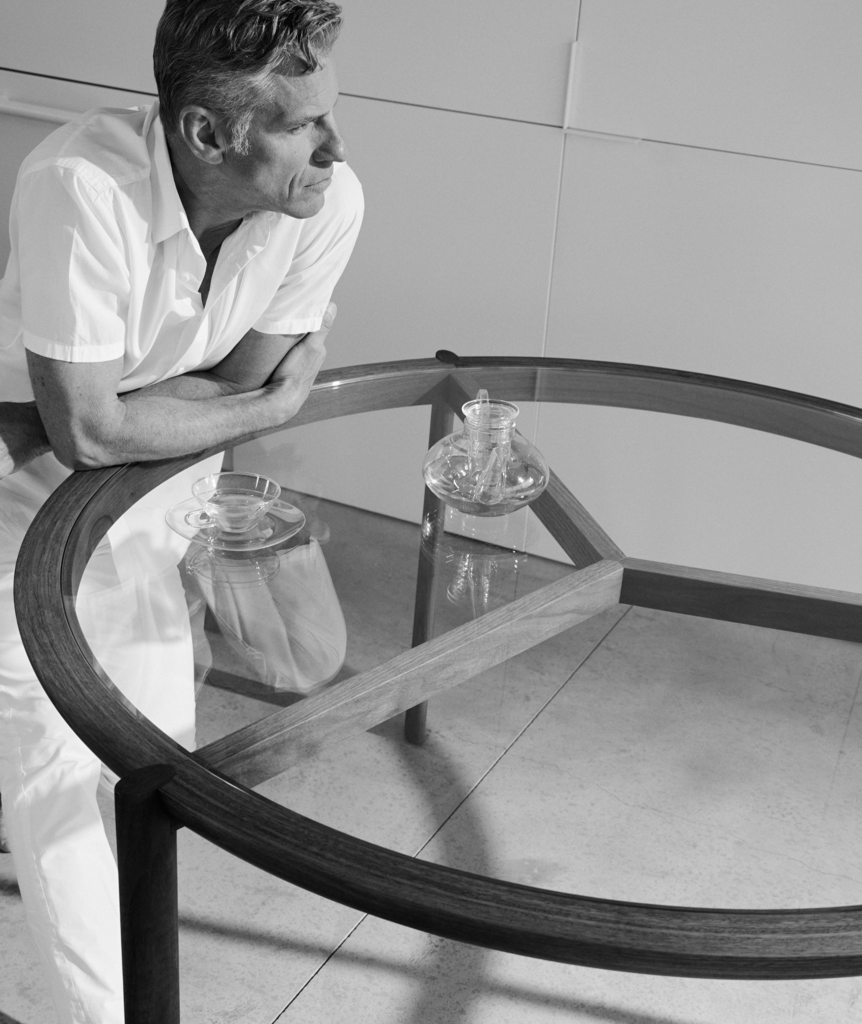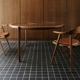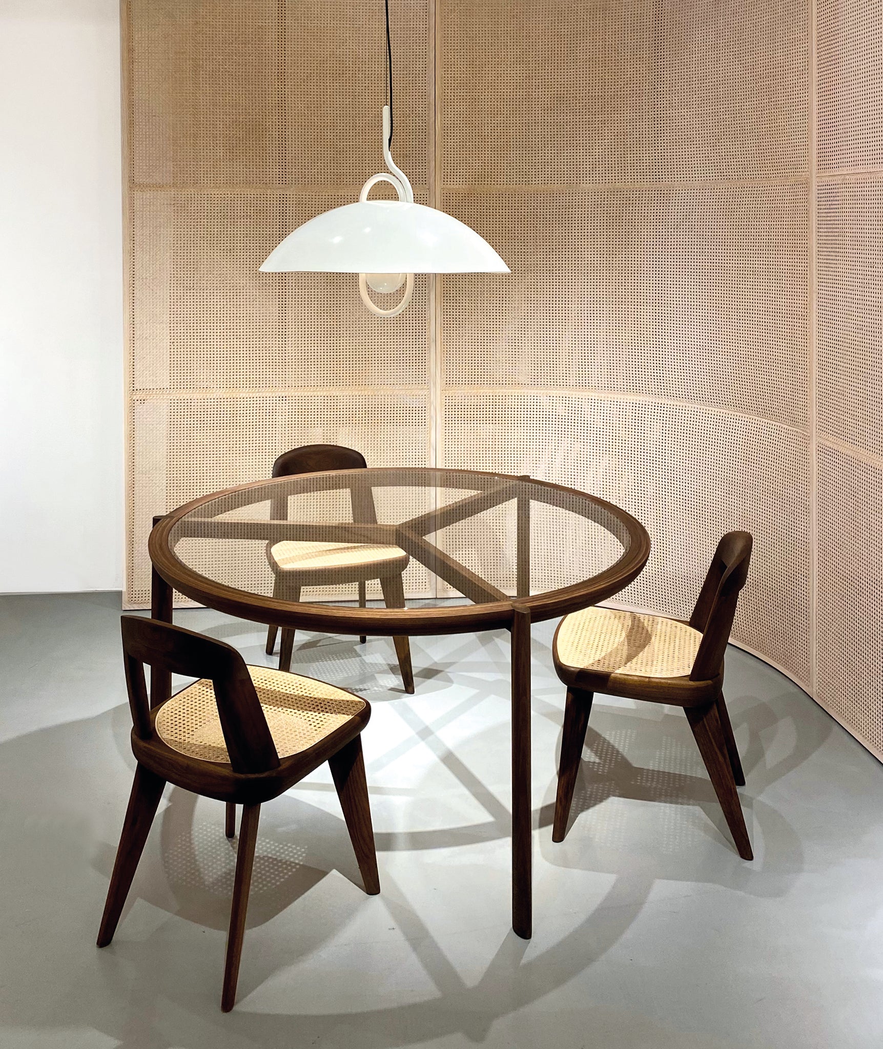 This design was originally commissioned by a large Australian architecture firm who wanted the perfect wooden table to complement other BassamFellows pieces throughout the lobbies of a new tower. As simple as a geometric line drawing, the table features a large wooden ring supported by three or four spokes which connect seamlessly to the outer edges. A precise timber circle – the work of our master craftsmen – emphasizes the wood’s grain, conjuring a concentric effect best admired through a glass top. The table’s elliptical legs create a slim silhouette that balance the top’s bold geometry. With no hard edges, the legs can appear wide or thin, depending on the viewing angle. The Spoke Table balances heft and levity, an elegant and versatile design that marries architectural precision with craftsmanship.