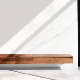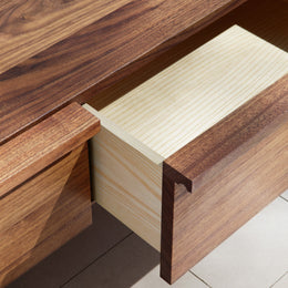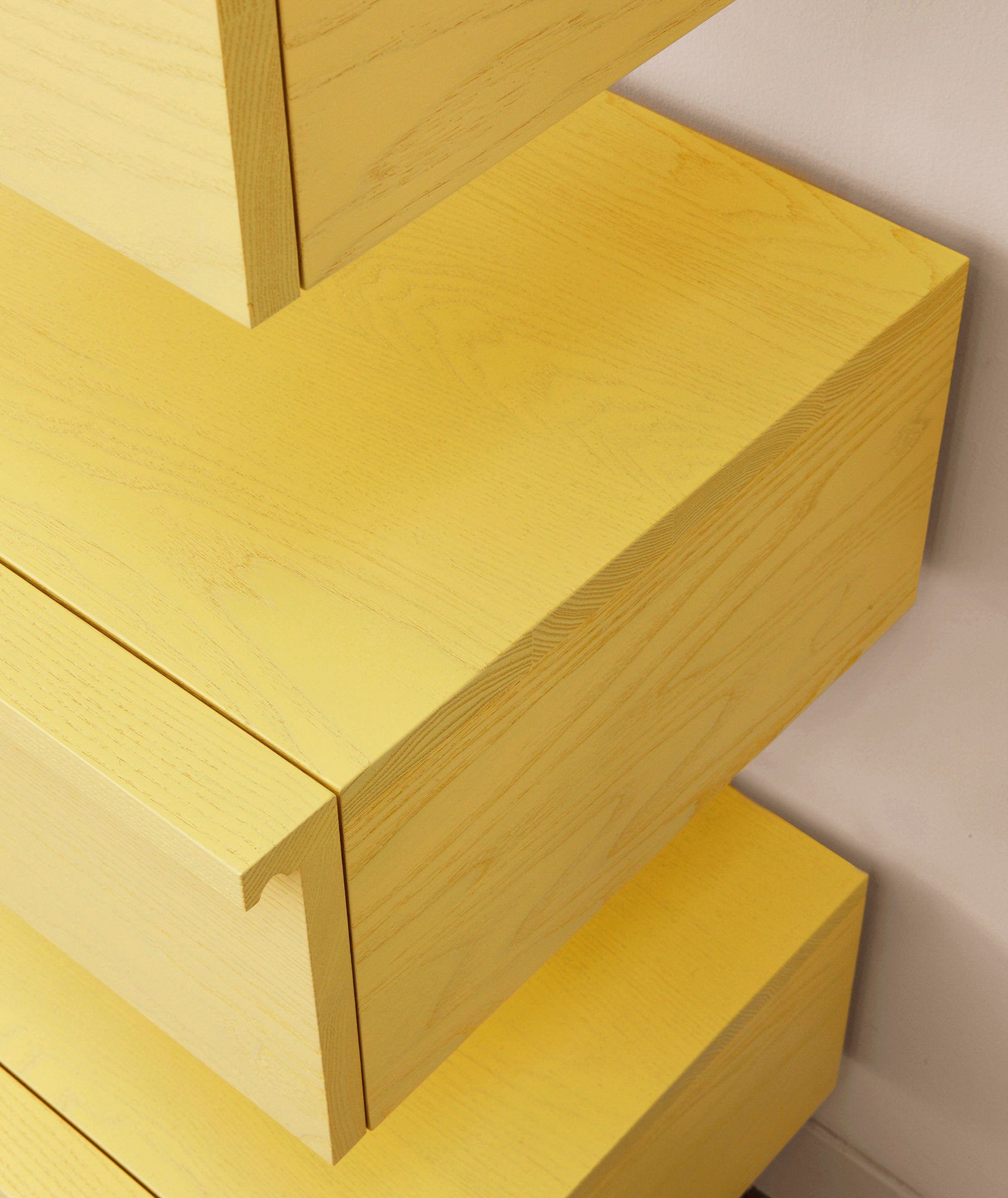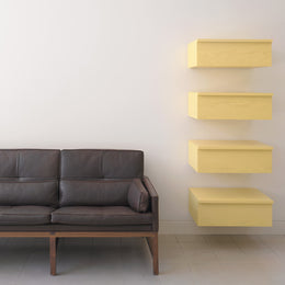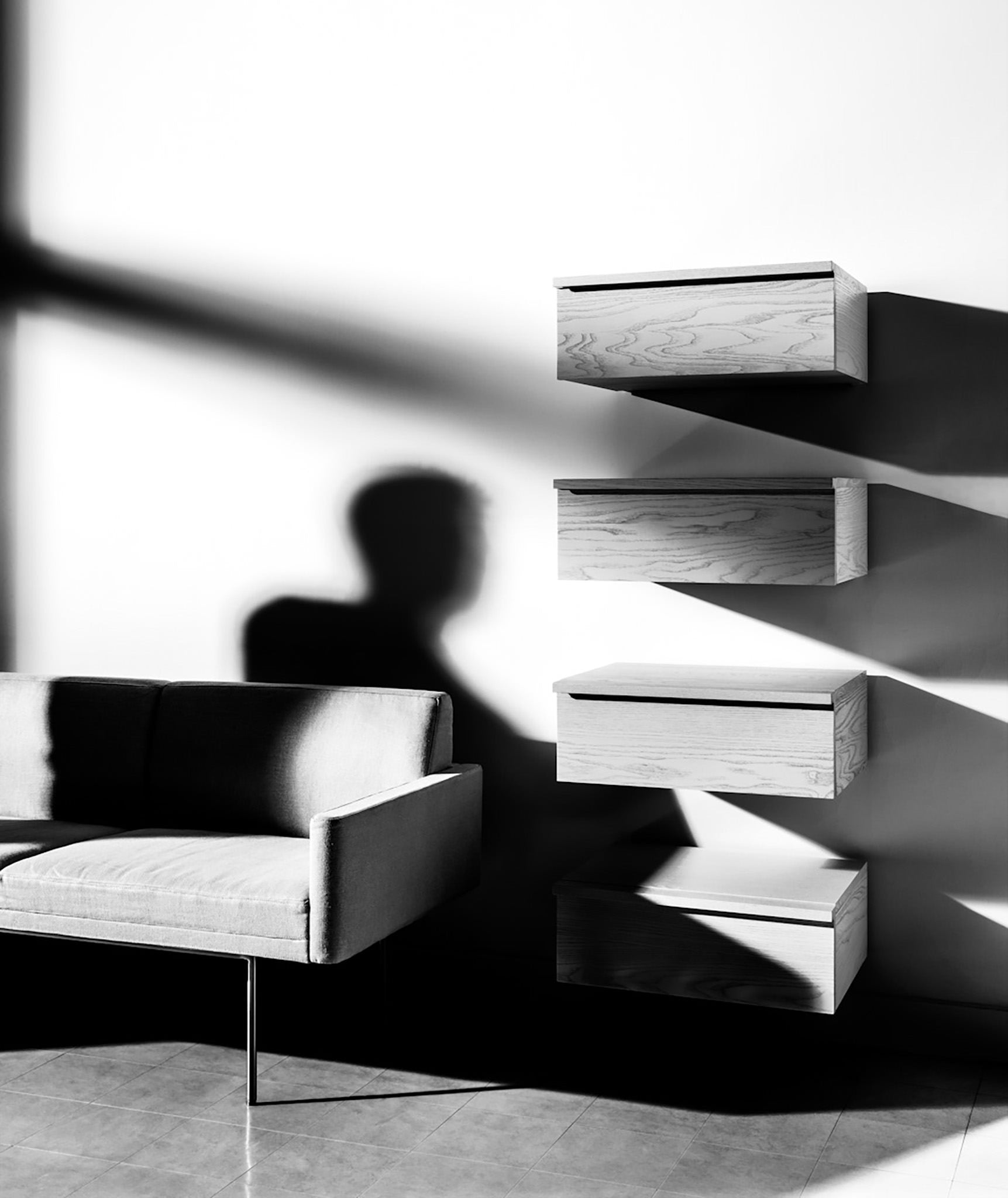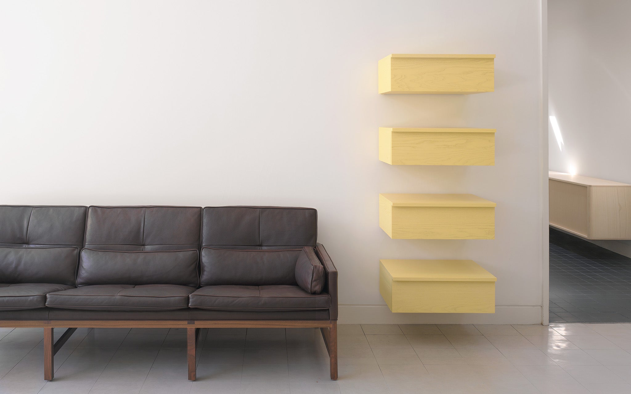 Taking inspiration from the multiple boxes and geometry of Minimalist artist Donald Judd, our Wall Drawers transform a simple wooden box into something sublime. Each is constructed of fine wood veneer with a solid wood front and carved, integral pull. Soft-close interior hardware maximizes functionality while mounting hardware allows for ease of installation. The Wall Drawer series is immensely flexible. They can be added to a bedroom or living room to deconstruct the traditional bureau – Drawers can be hung vertically and spaced apart, providing ample storage without massive bulk. They also double as lightweight floating bedside tables. In the dining, media, or conference rooms, the Drawers can be hung horizontally to create long lengths of storage – a far lighter alternative to a traditional credenza.