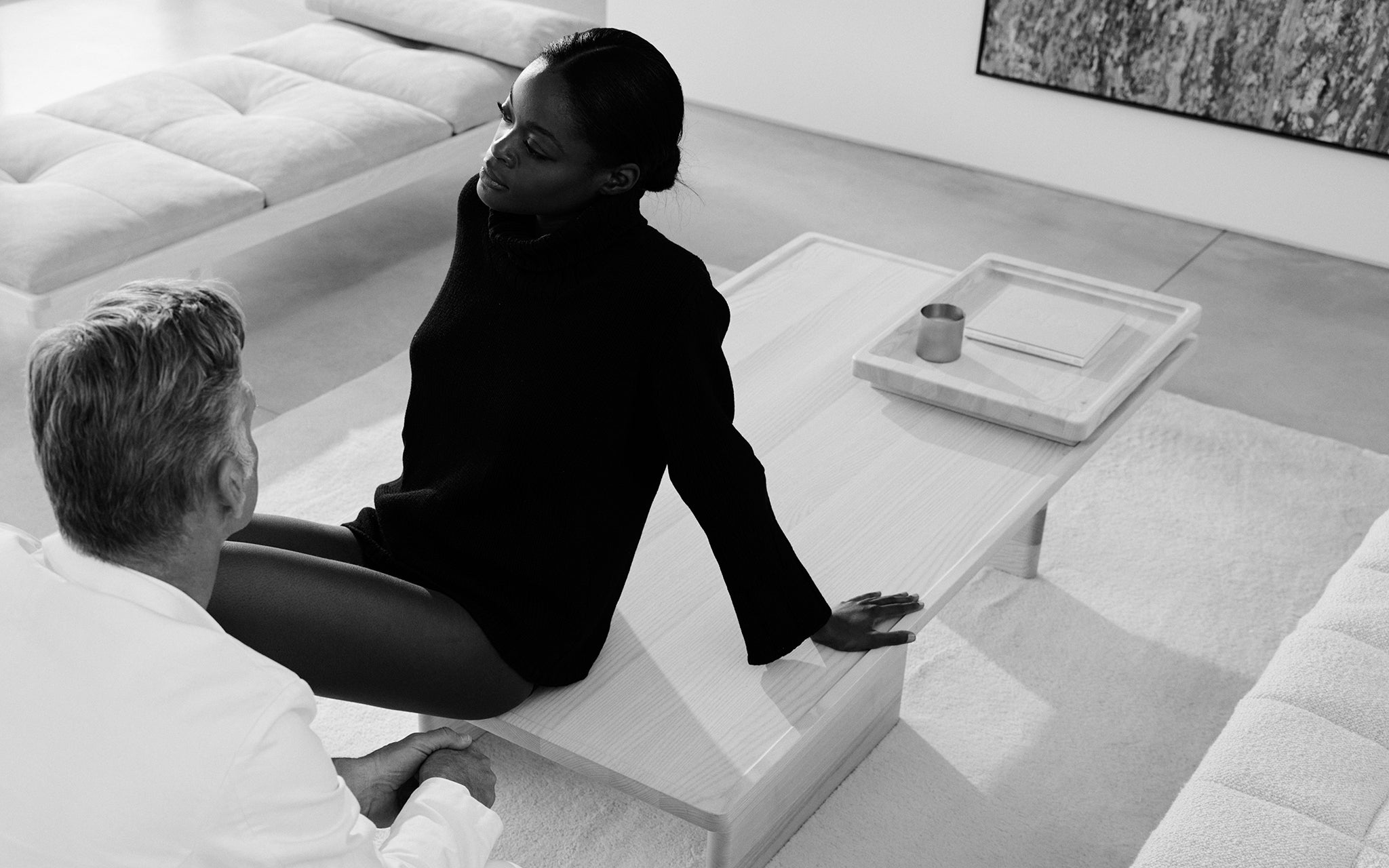 As with many of our designs, the Asymmetric Sofa came out of a need for something that didn’t exist already in what we considered precisely the right form. Craig Bassam wanted a scalable sofa for his personal study that would harmonize two competing needs – something functional for collaborative work meetings, and an object he could relax with. The result was our landscape sofa group. The group consists of three different lengths of sofa units, a corner unit, a chaise, and an ottoman. The planning module allows for a multitude of layout arrangements from a typical sofa format to landscape configurations where armed, armless, and backless elements can be combined to vary the horizon line of the piece and open it up to the room. A sense of buoyancy is emphasized with blade-like, solid wood legs that virtually disappear, making the piece appear to float.