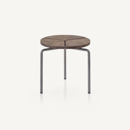 A sturdy but agile floating presence is created by the table’s base, made from circular sections of stainless steel tube in different finishes. All joints are entirely invisible. The tabletop is connected to the base with circular stanchions further adding to the table’s lightness. In teak or iroko, the table also works well in covered outdoor environments.