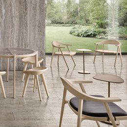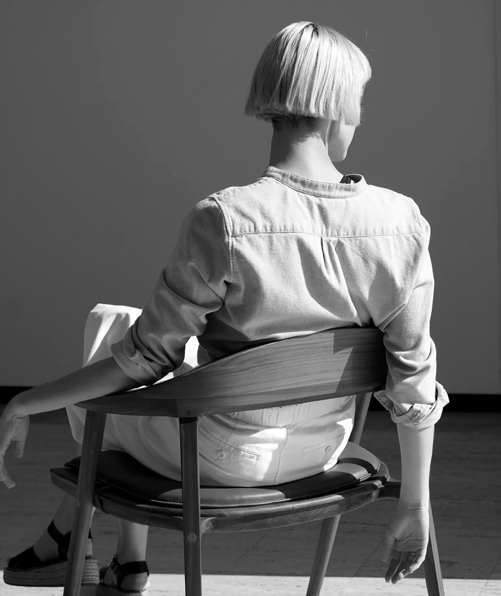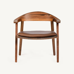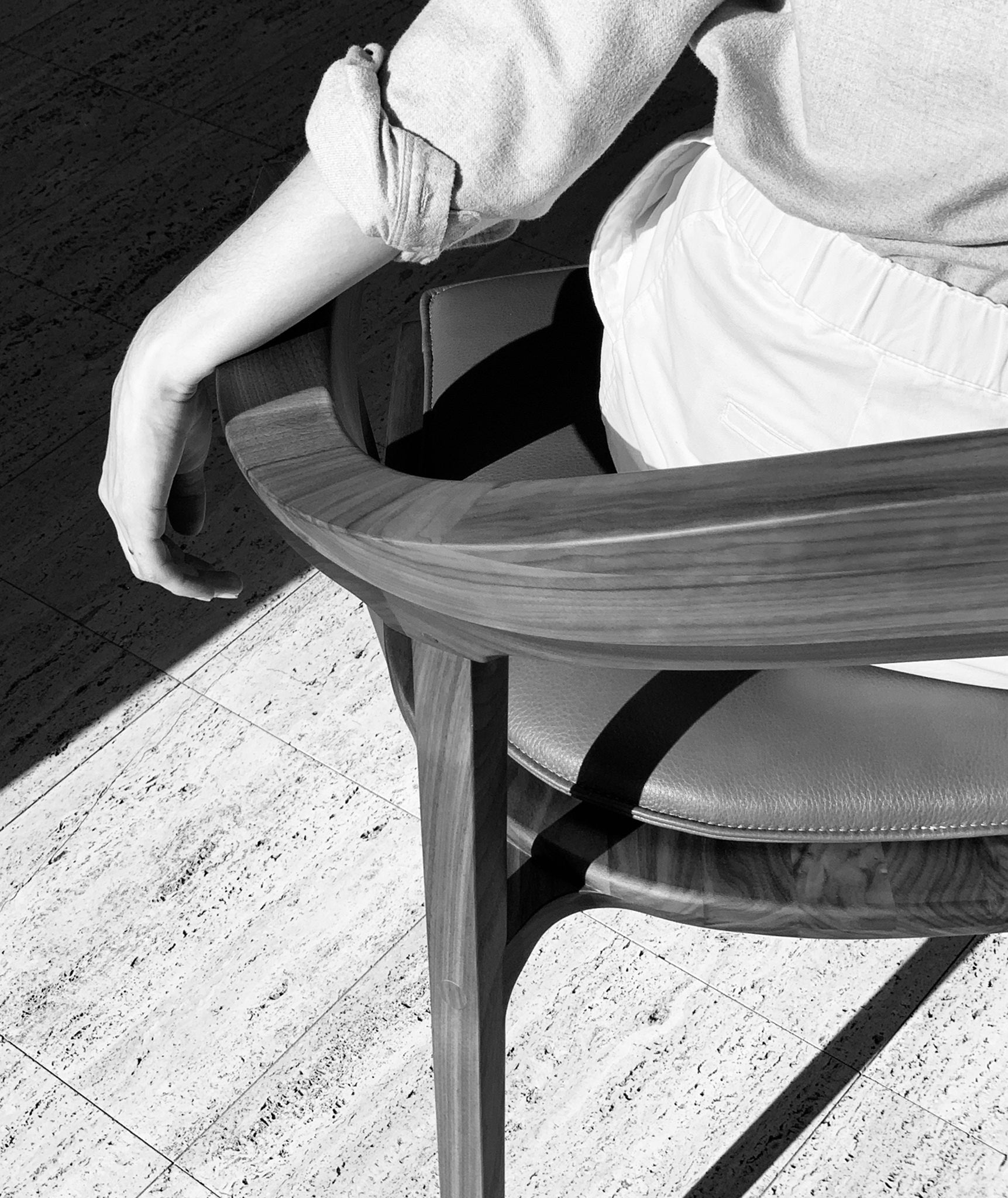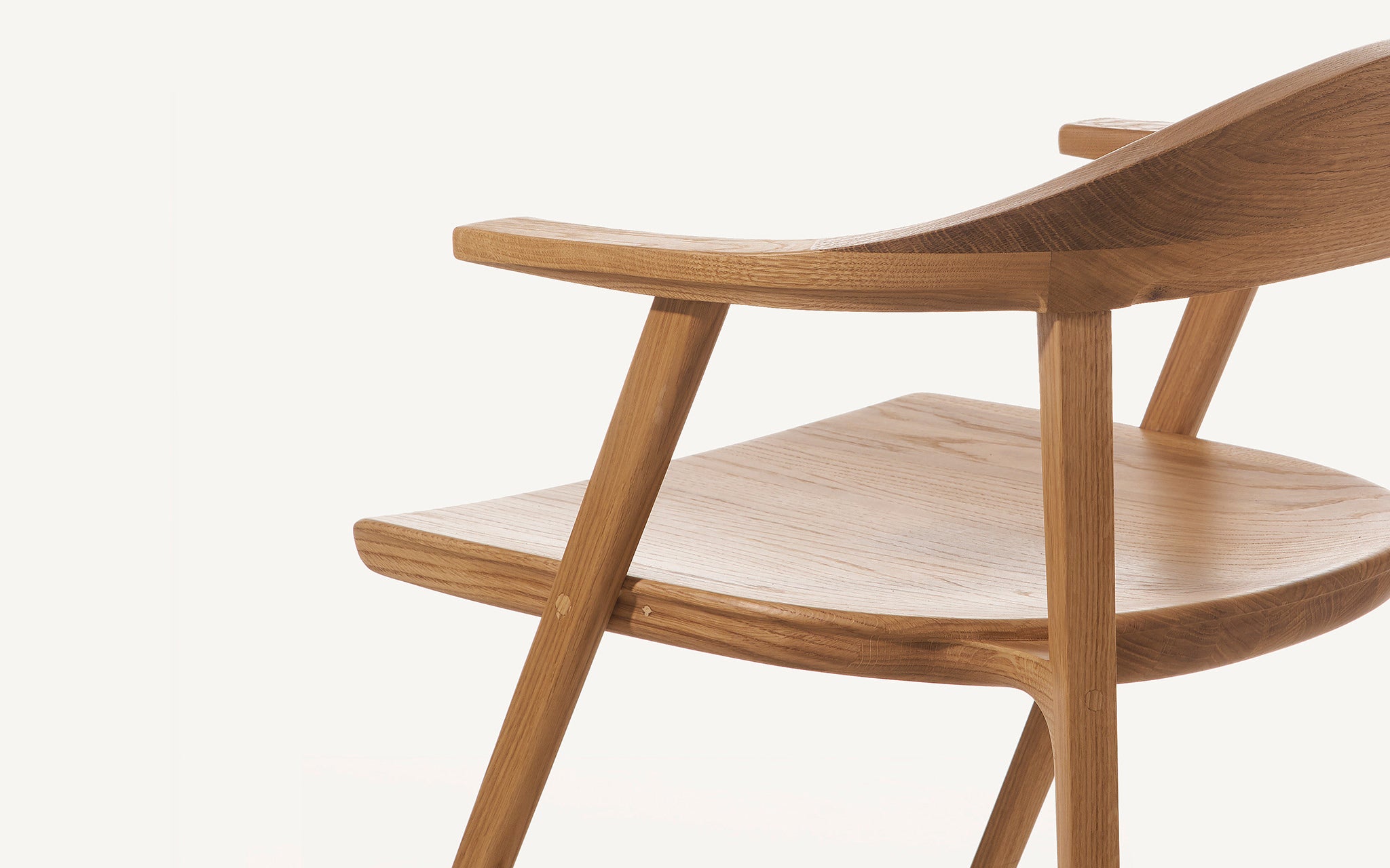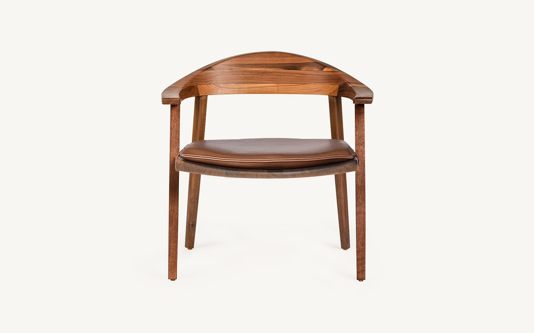Our Mantis Side and Mantis Lounge Chair, carved entirely from solid wood, represent a fresh take on the classic American courthouse chair, inspired by the powerful silhouette, stance, and repose of the praying mantis. Strong and elegant, sharp and curved, thick and thin — the Mantis is sturdy and solid, yet visually light, and available with hand-stitched leather cushions to amplify the comfort of what is already a profoundly ergonomic seat. Each joint of beautifully grained wood is reinforced by steel pins to ensure maximum durability.
