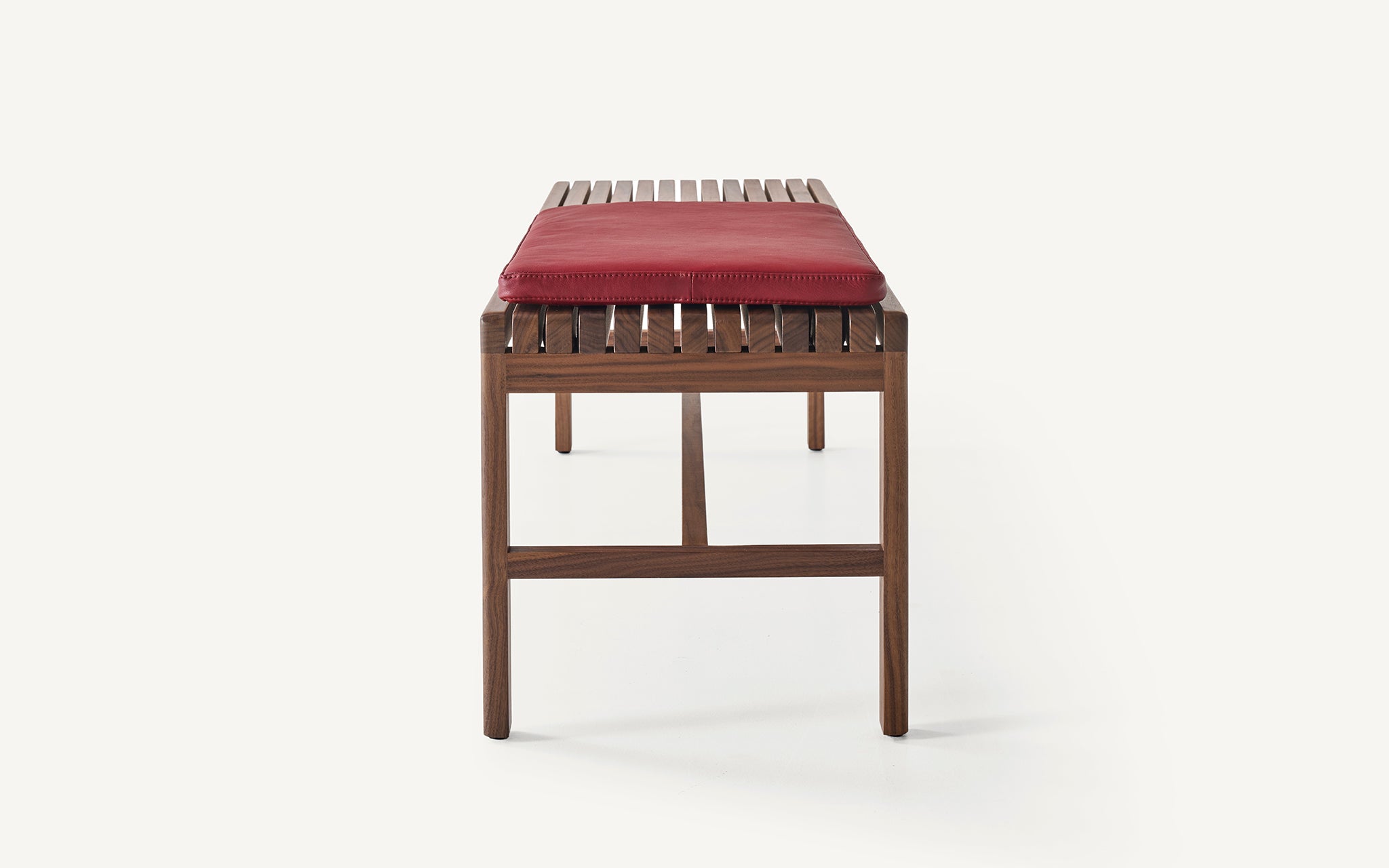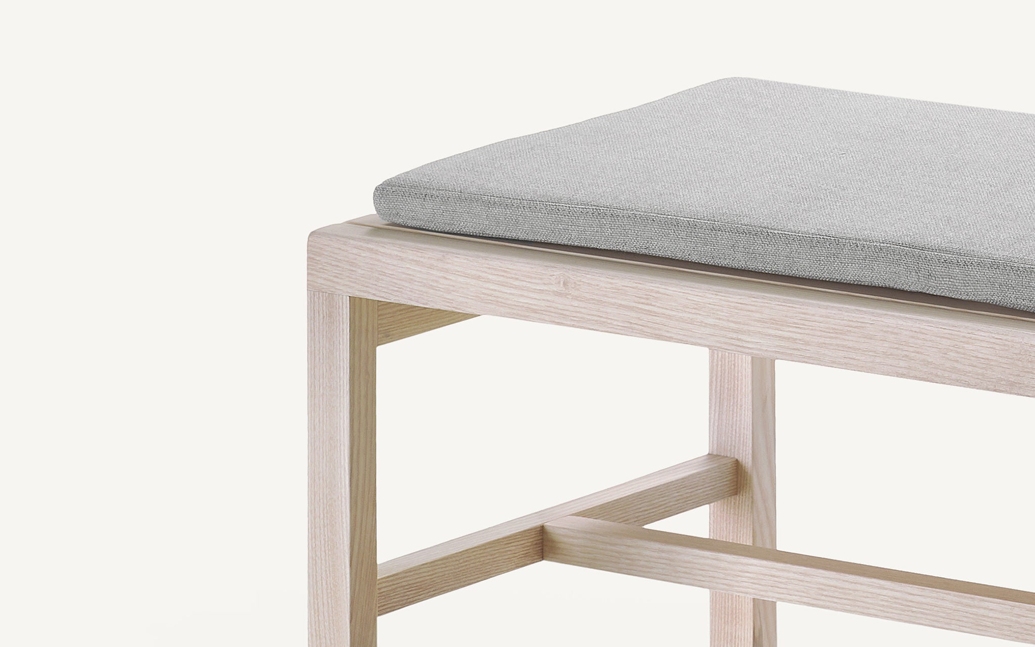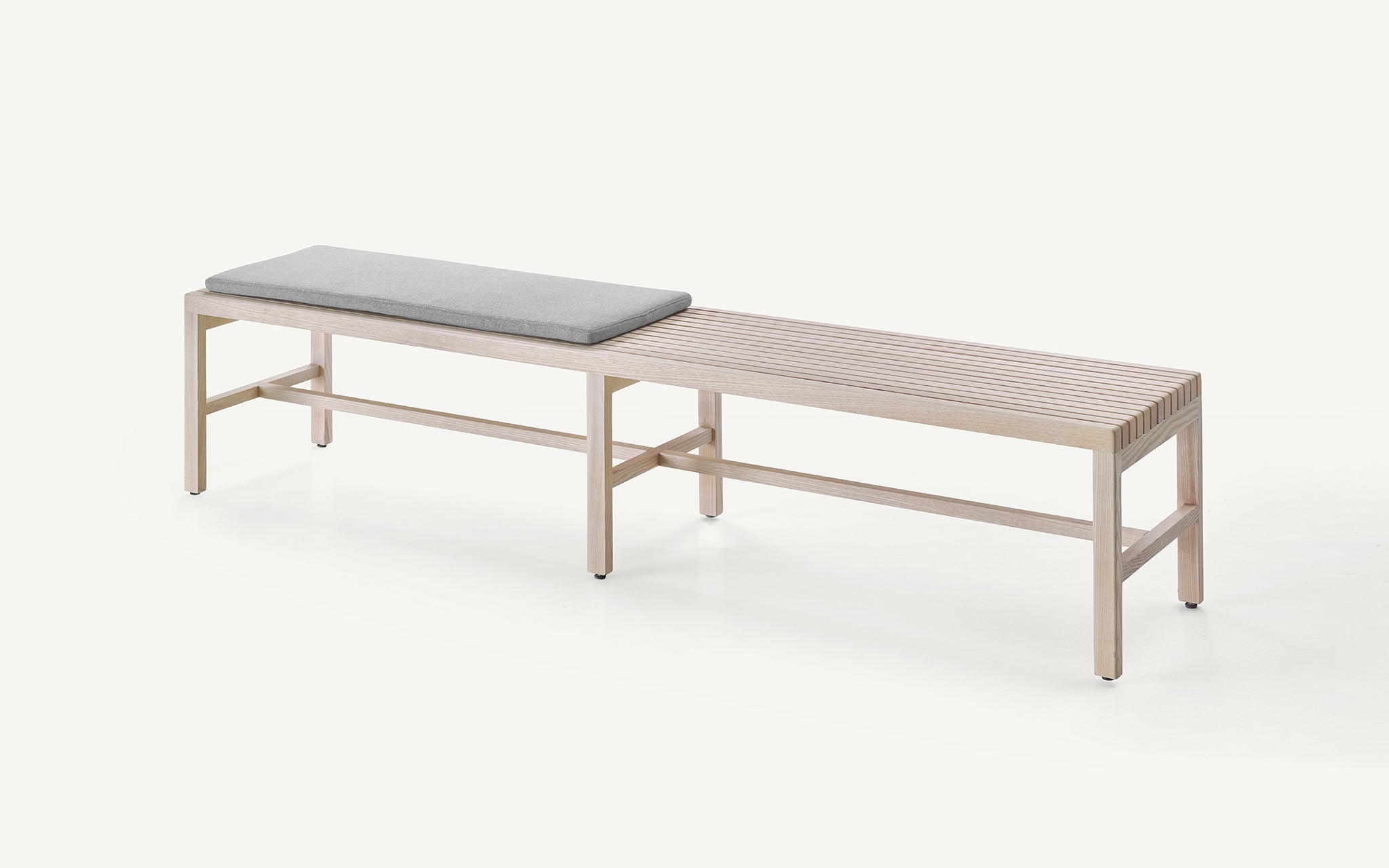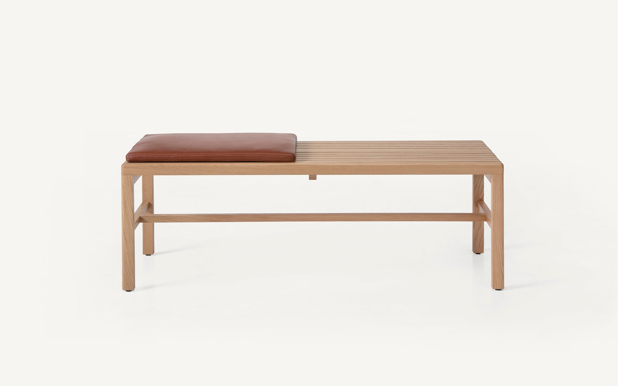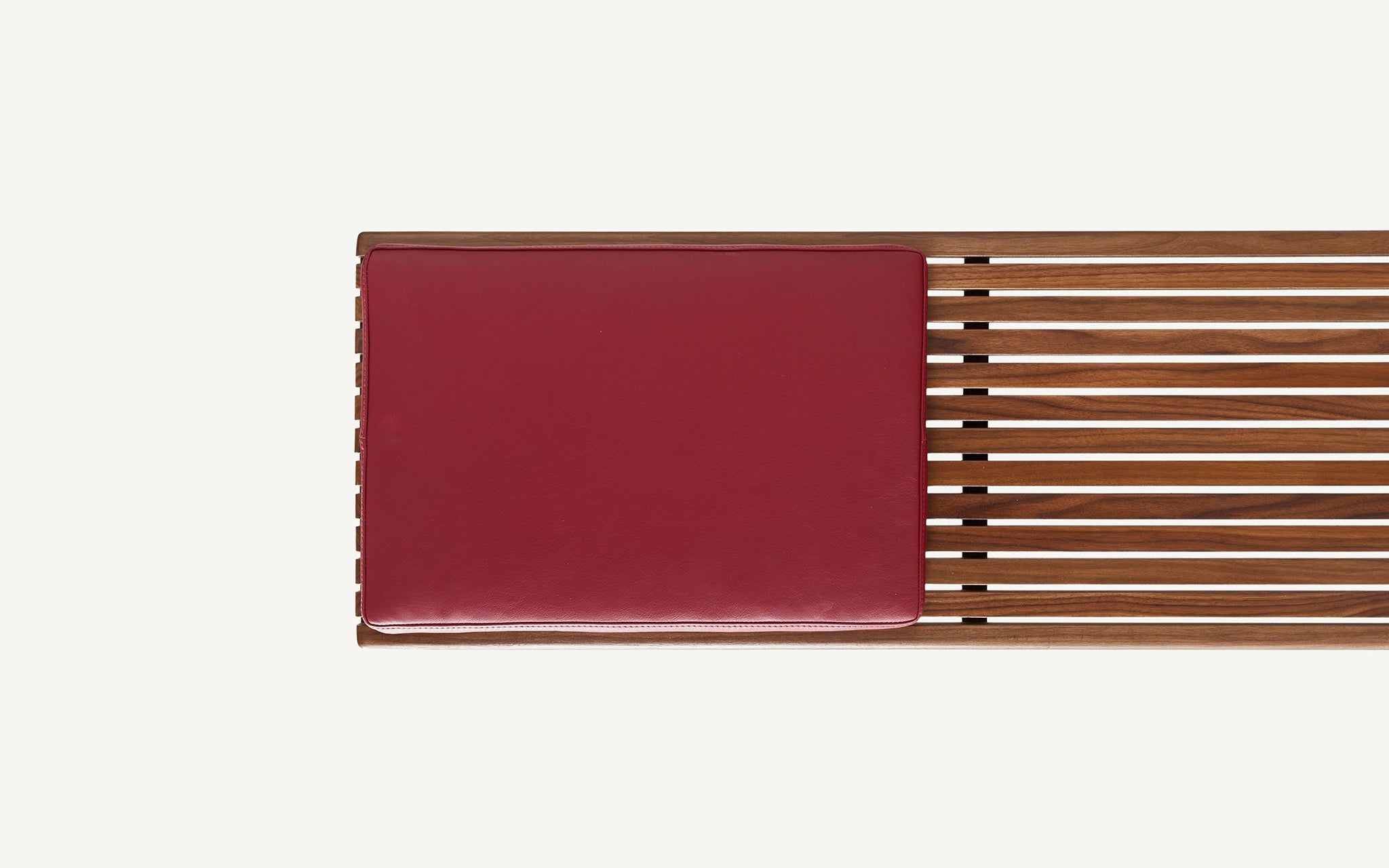 Our version of this core essential is slender and soft in tone, but with an obvious engineered strength. Originally designed for a luxury hotel group, it was conceived to meet the needs of a variety of environments, from private homes to constant use in commercial spaces. The Slat Bench is a solid wood study in crafted simplicity and structural honesty. The beams of the design form continuous lines, legs meld seamlessly into parallel slats spanning the bench’s generous length. The resulting effect is one of both heft and surprising lightness. The BassamFellows Slat Bench is available with or without cushioning, in two different sizes.