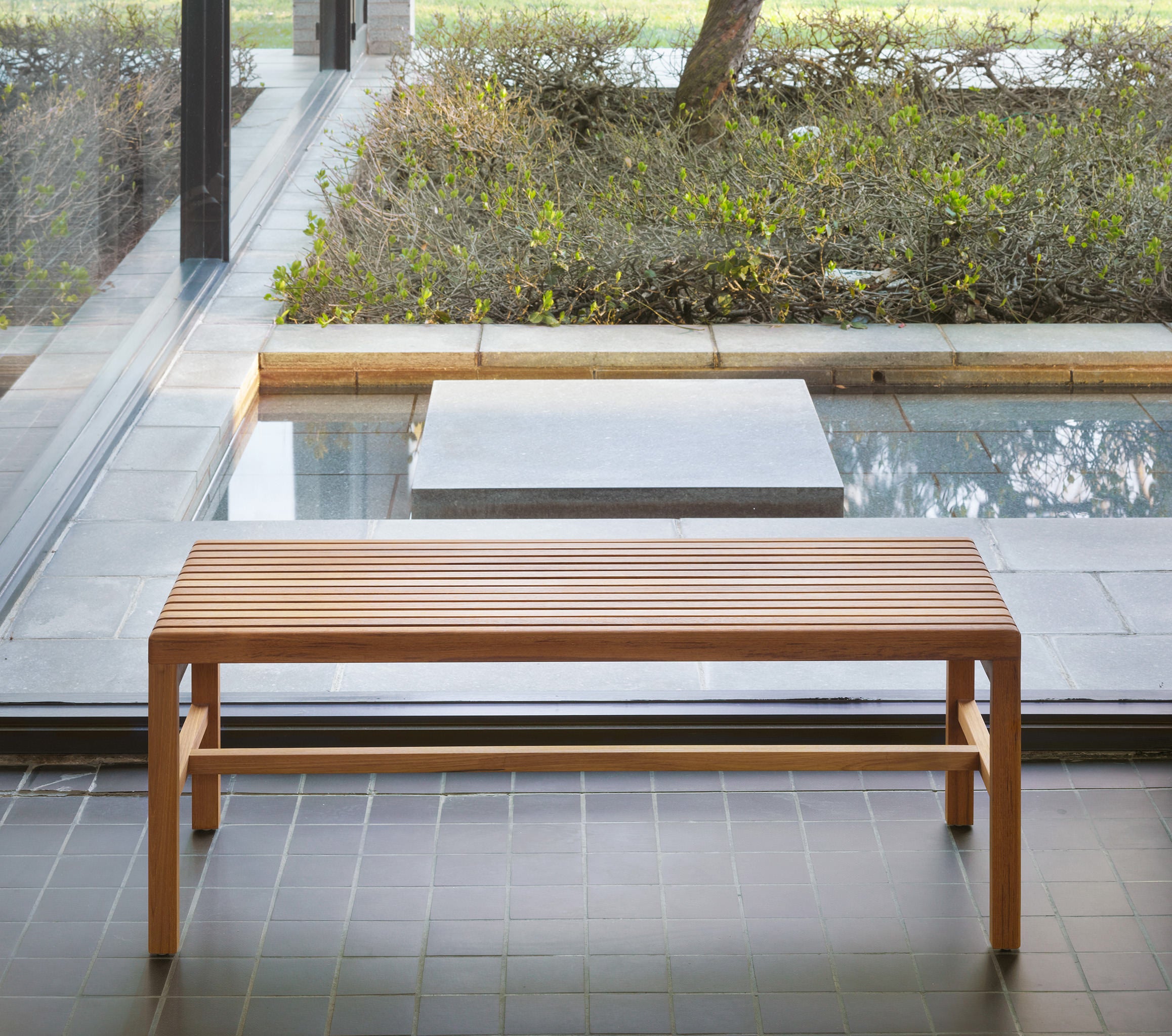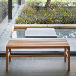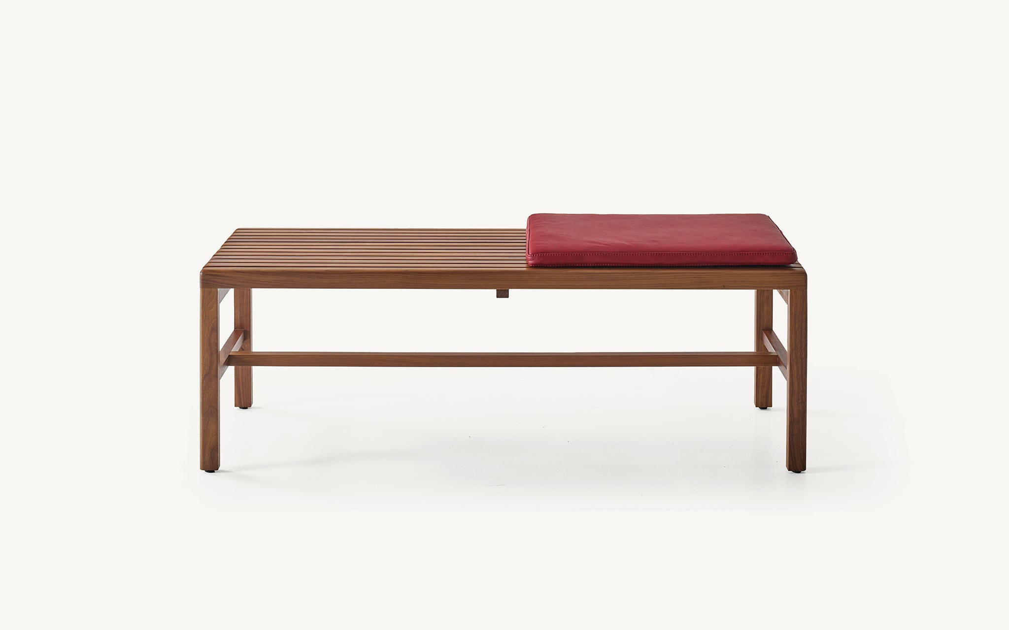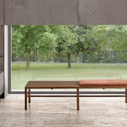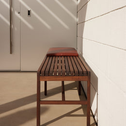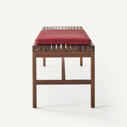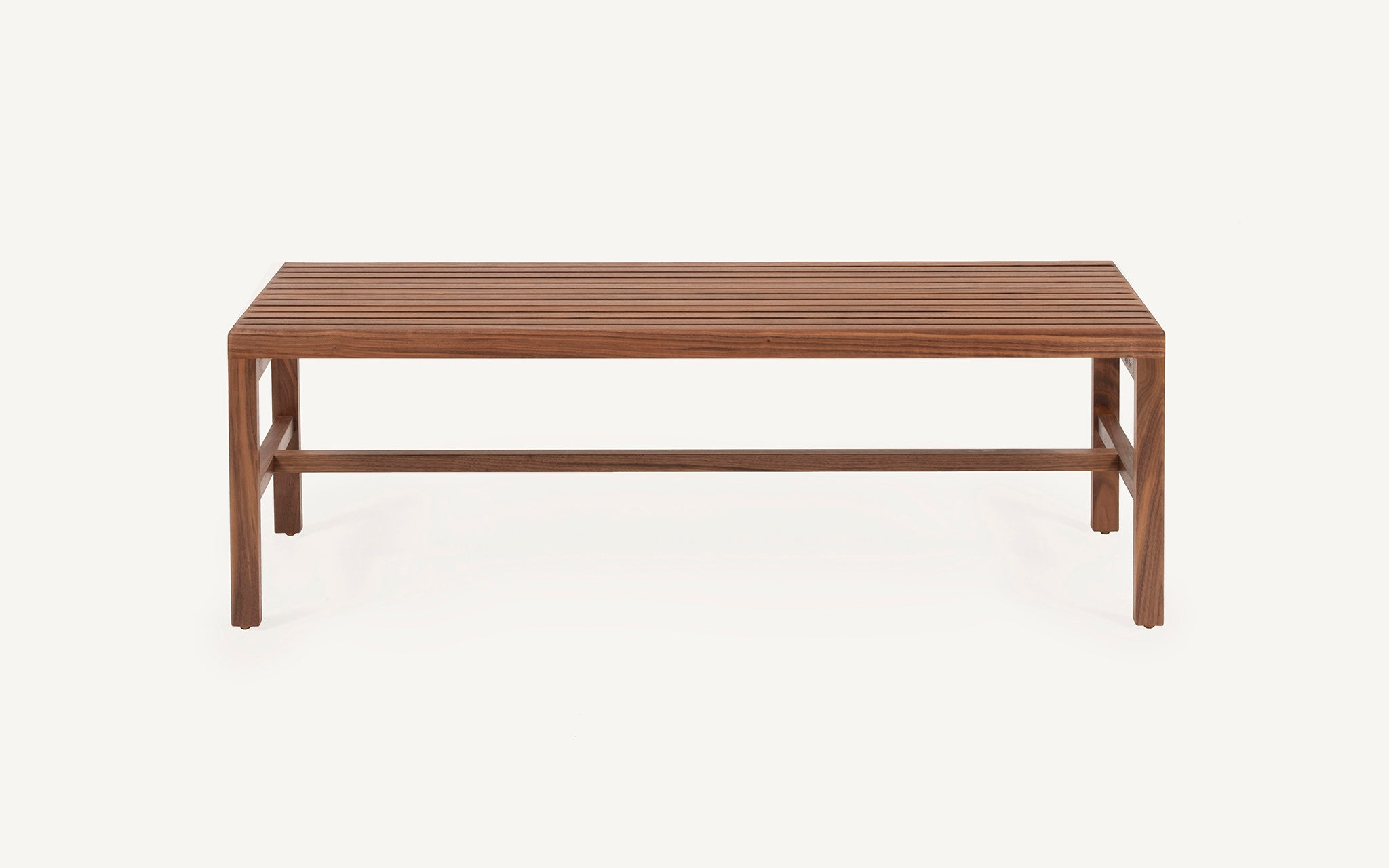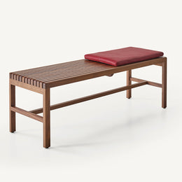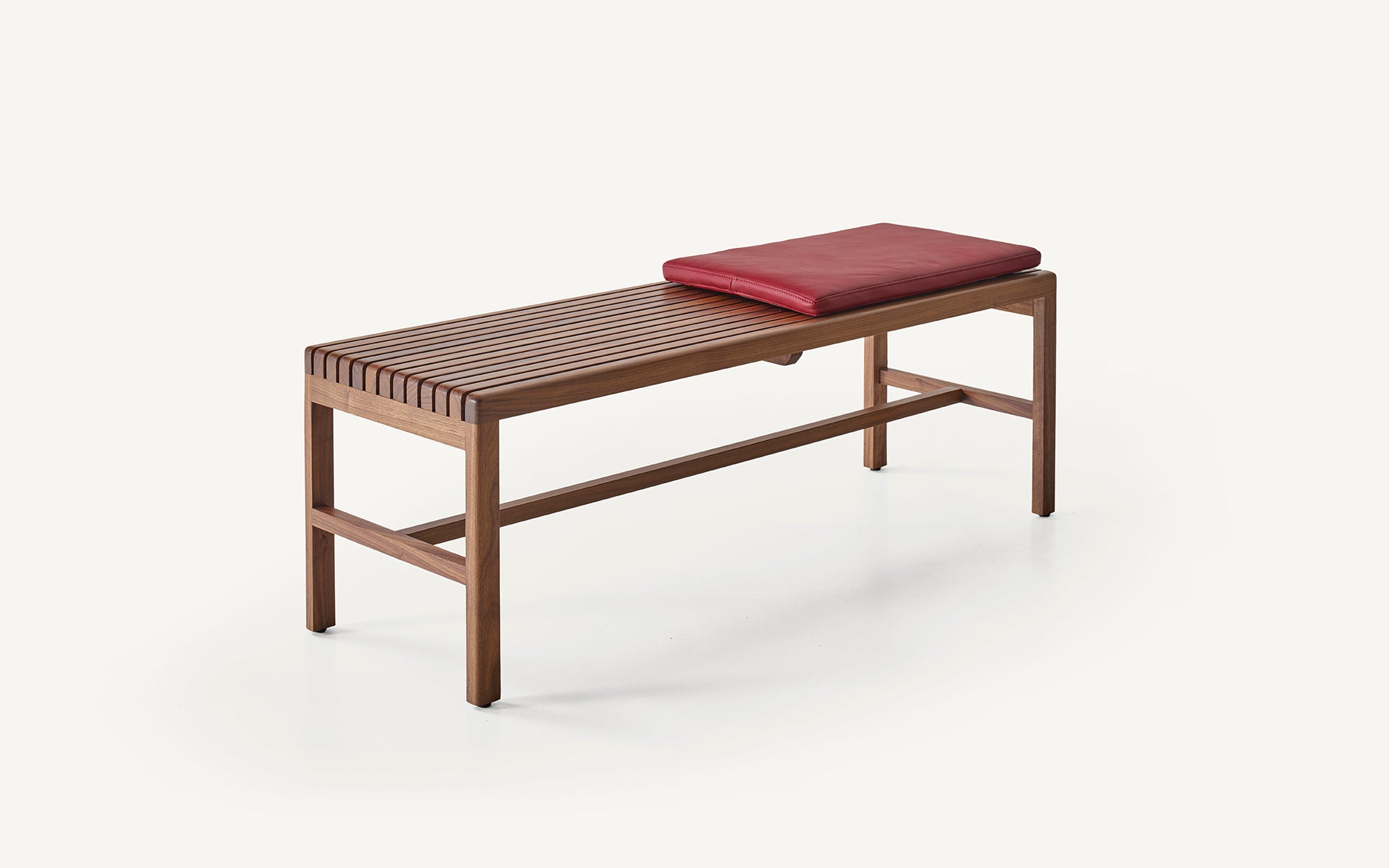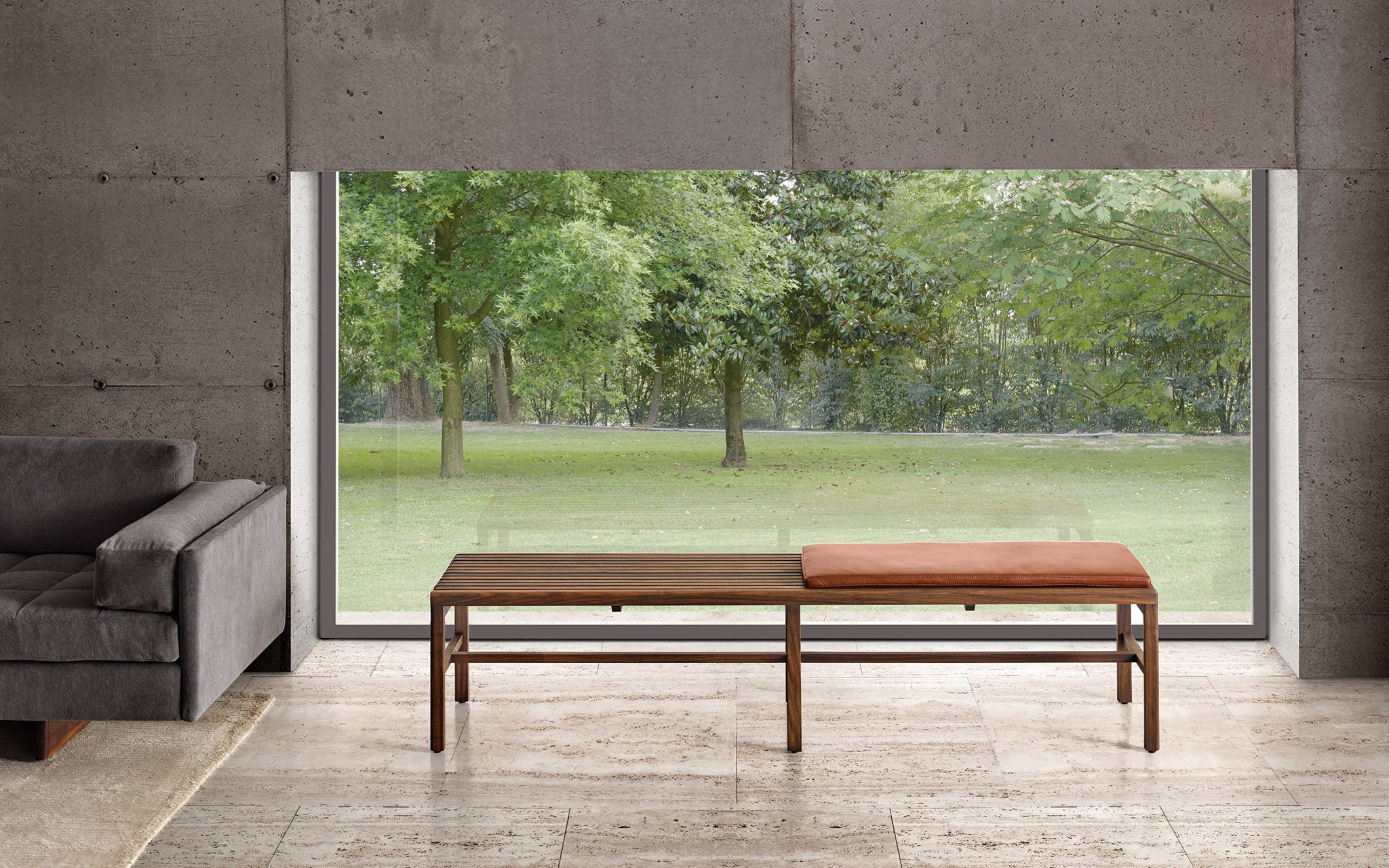 Our version of this core essential is slender and soft in tone, but with an obvious engineered strength. Originally designed for a luxury hotel group, it was conceived to meet the needs of a variety of environments, from private homes to constant use in commercial spaces. The Slat Bench is a solid wood study in crafted simplicity and structural honesty. The beams of the design form continuous lines, legs meld seamlessly into parallel slats spanning the bench’s generous length. The resulting effect is one of both heft and surprising lightness. The BassamFellows Slat Bench is available with or without cushioning, in two different sizes.