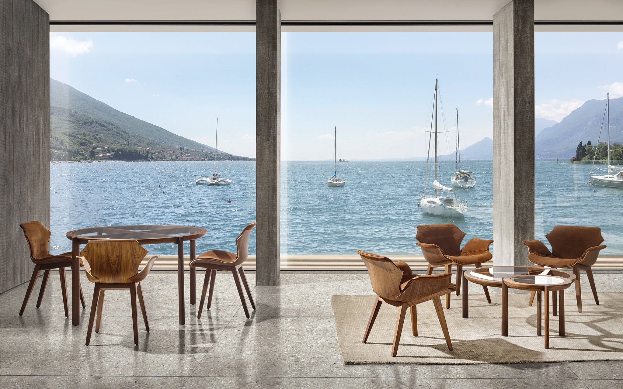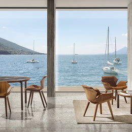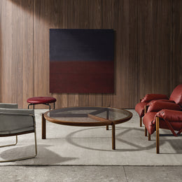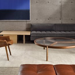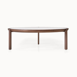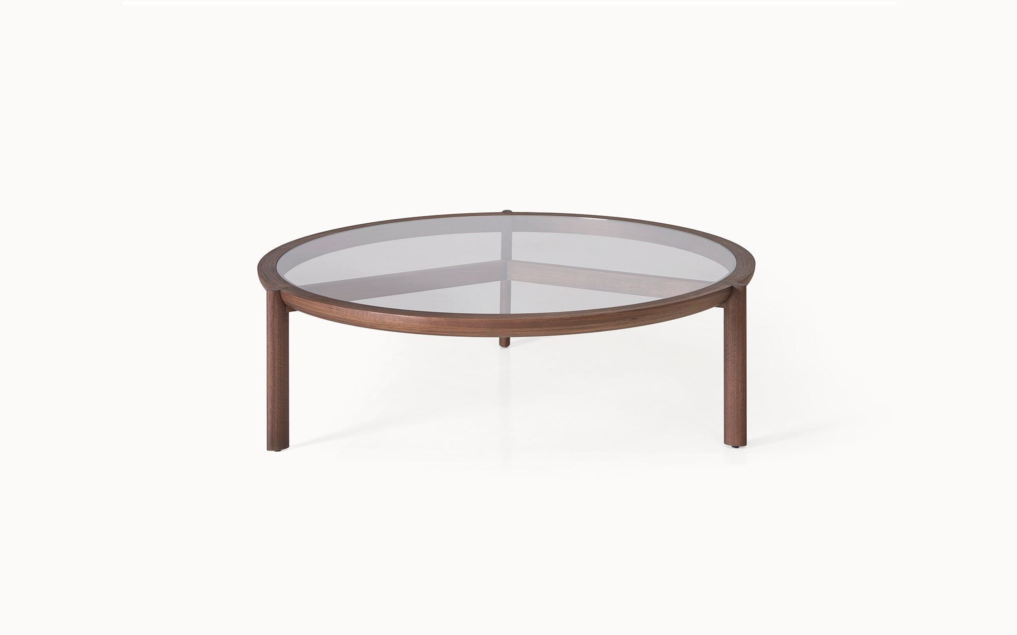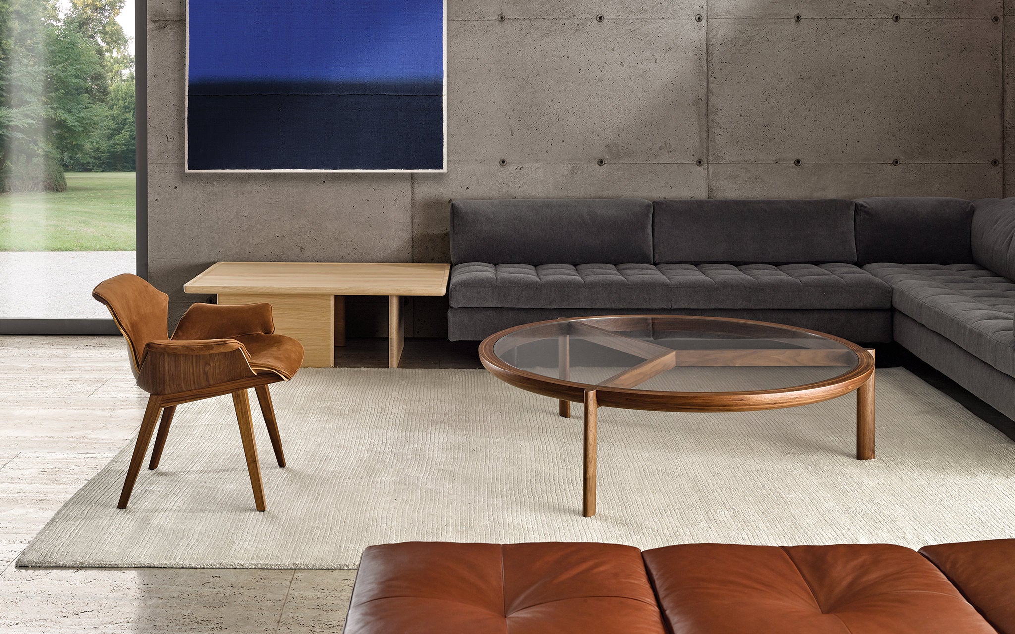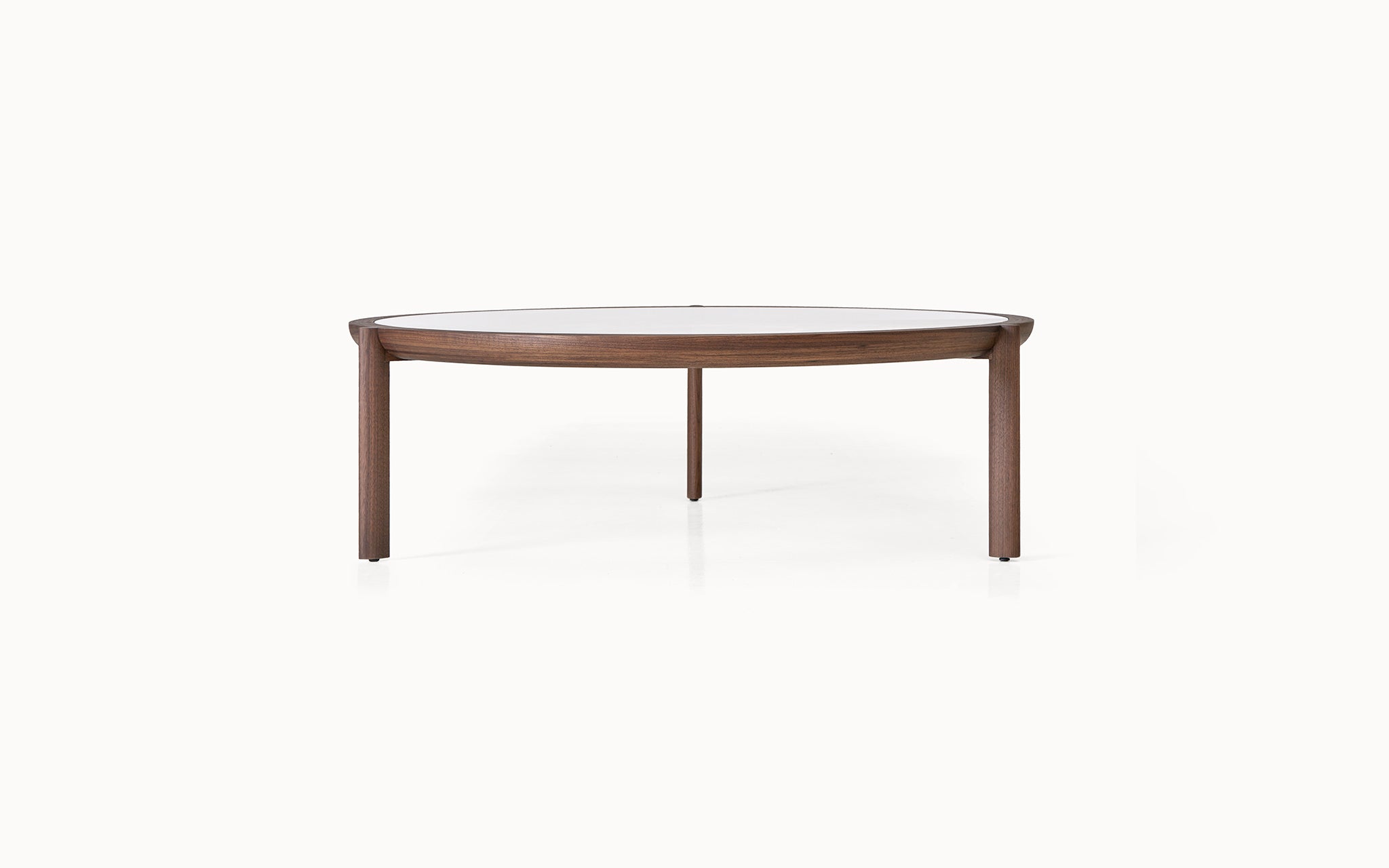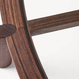 This design was originally commissioned by a large Australian architecture firm who wanted the perfect wooden table to complement other BassamFellows pieces throughout the lobbies of a new tower. As simple as a geometric line drawing, the table features a large wooden ring supported by three spokes which connect seamlessly to the outer edges.‎ A precise timber circle – the work of our master craftsmen – emphasizes the wood’s grain, conjuring a concentric effect best admired through a glass top.‎ The table’s elliptical legs create a slim silhouette that balance the top’s bold geometry.‎ With no hard edges, the legs can appear wide or thin, depending on the viewing angle.‎ The Spoke Table balances heft and levity, an elegant and versatile design that marries architectural precision with craftsmanship.‎