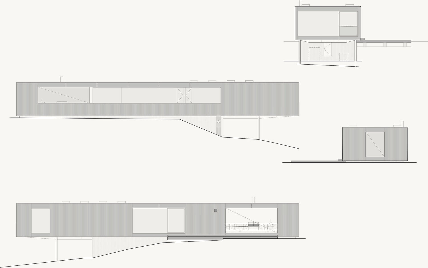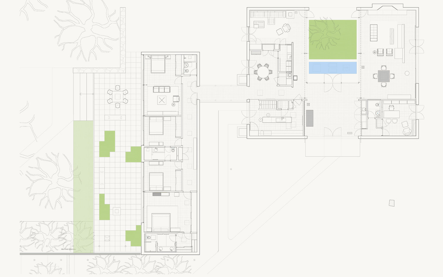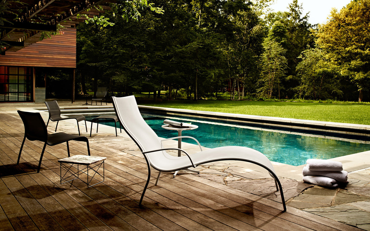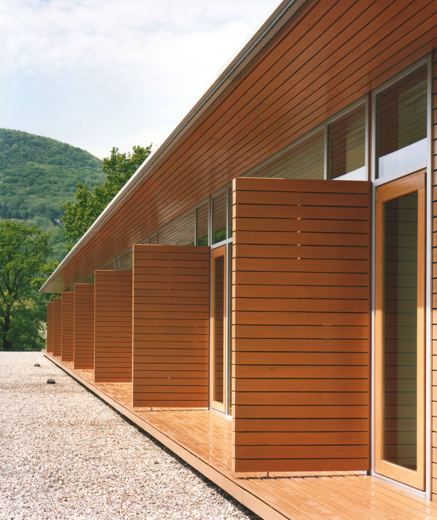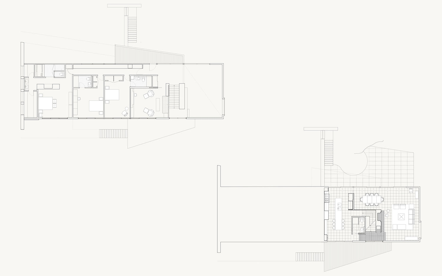 The current owners of the Willis Mills house asked us to continue the evolution of the house years after our initial restoration. The brief was to create a separate pool house/guest pavilion to engage the existing pool and take advantage of stunning views across the ridge while complementing the form and materiality of the original house.
