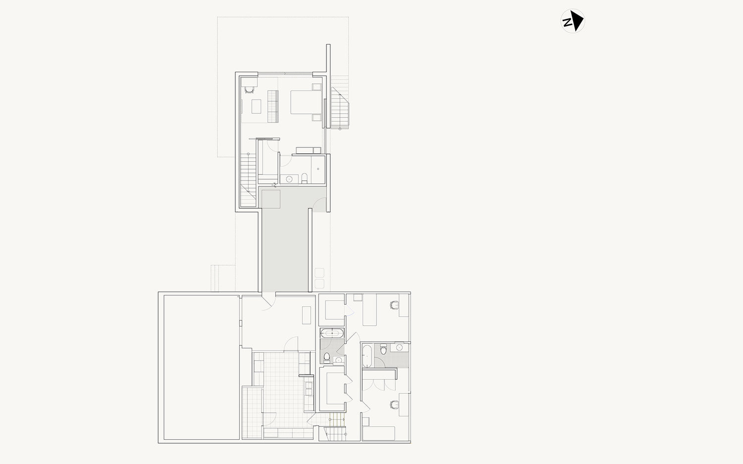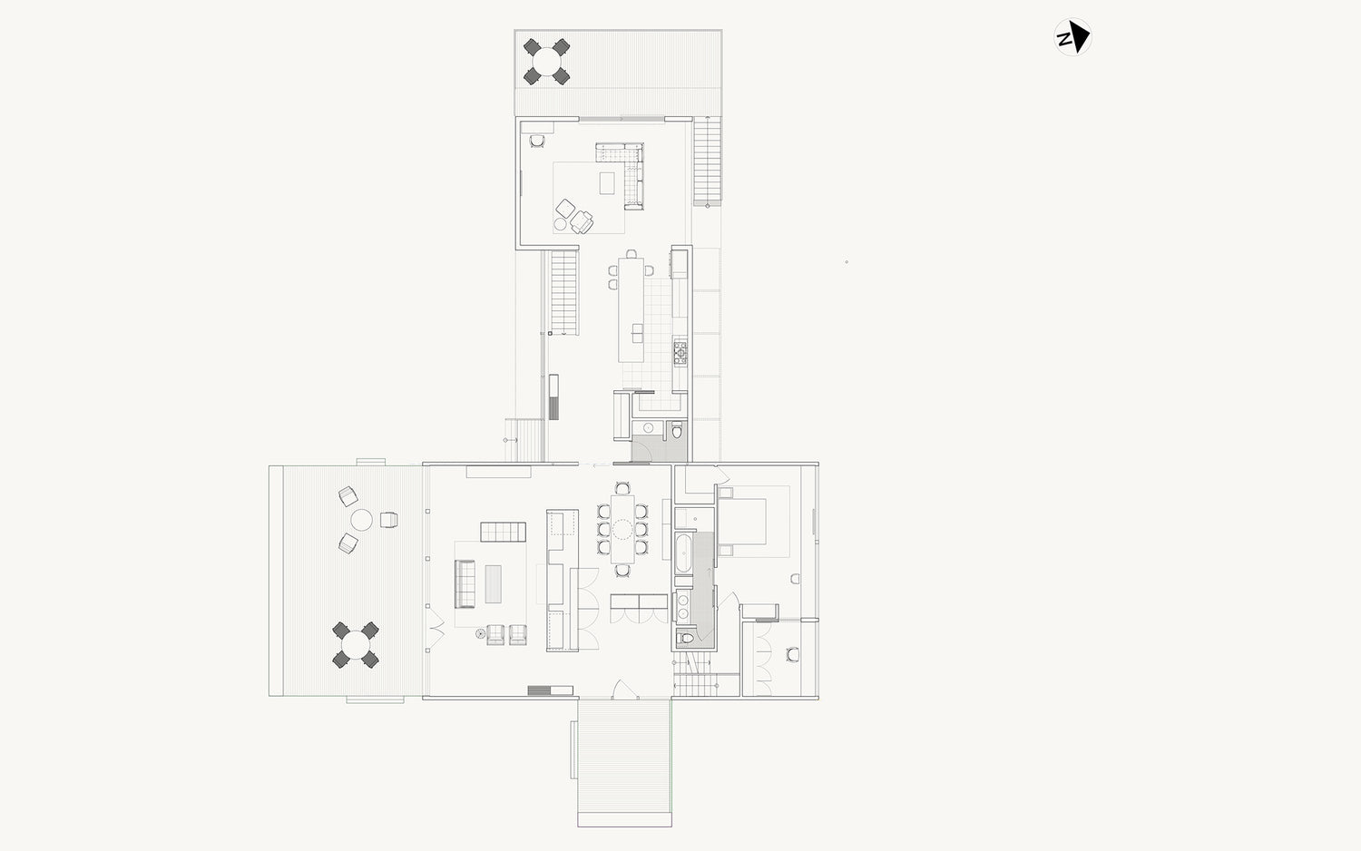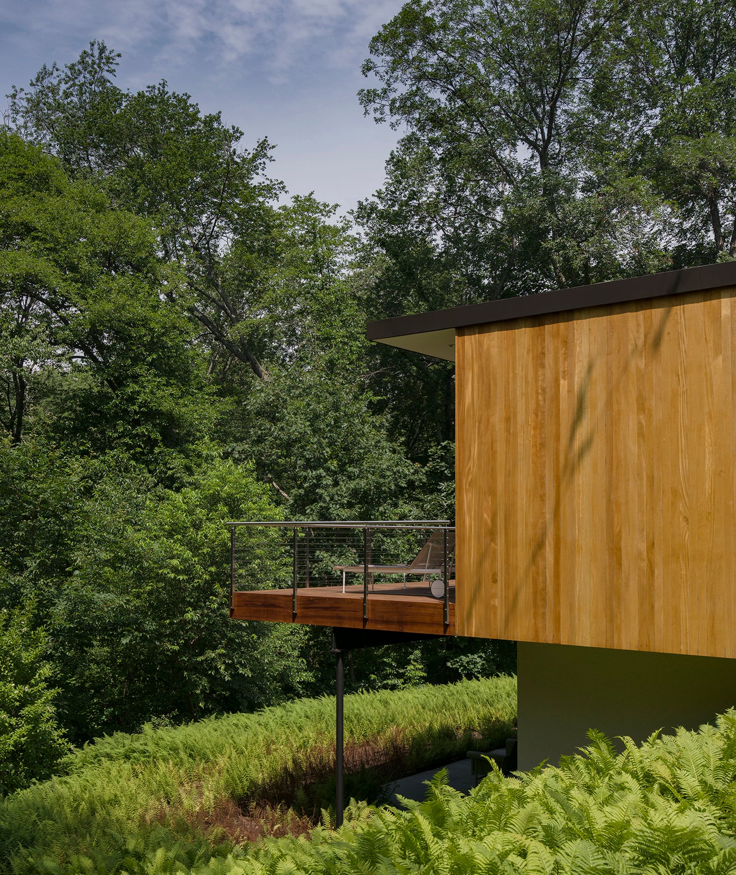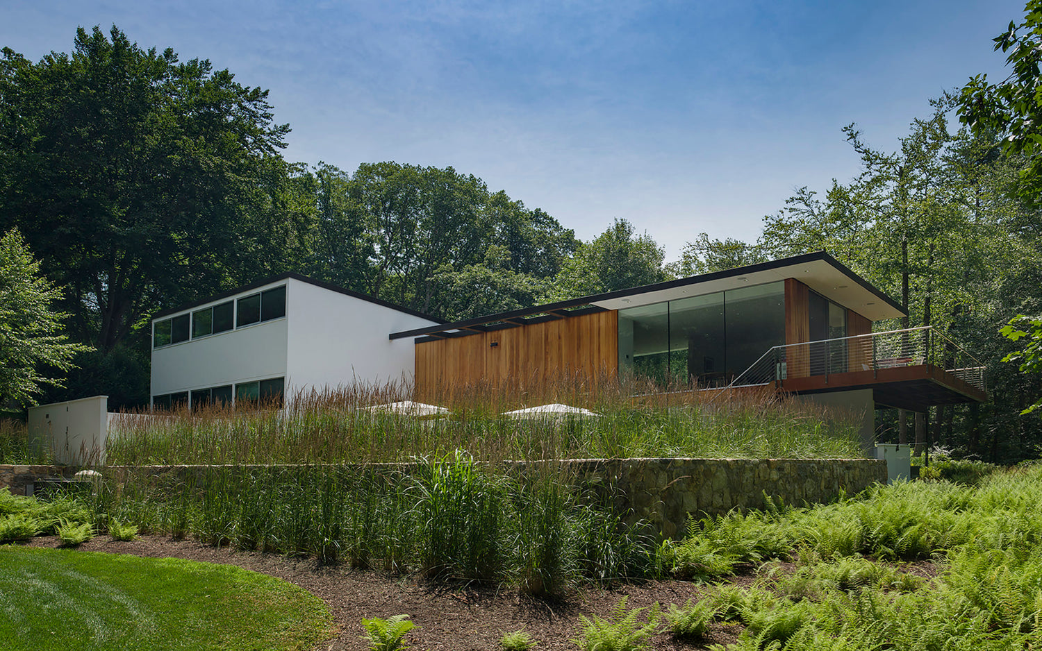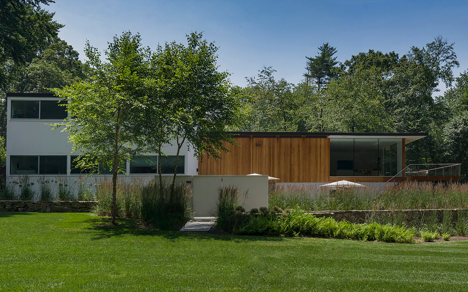 The client brief was to significantly expand this house originally designed by Hugh Smallen for himself in 1957. We fully renovated the original residence and created a new cantilevered pavilion to house the kitchen, family room and guest room. The house won a preservation award from New Canaan Preservation Alliance.
